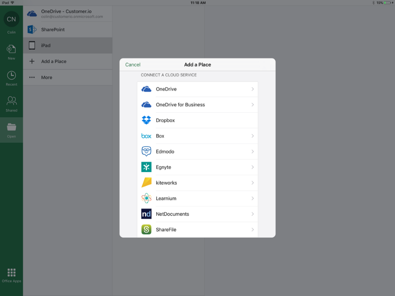 Since there’s no filesystem, the only way you can get data in to Microsoft Excel for iPad is through cloud drives or requesting a file be opened in Excel from another application. Unsurprisingly, Google Drive is not one of those cloud services.